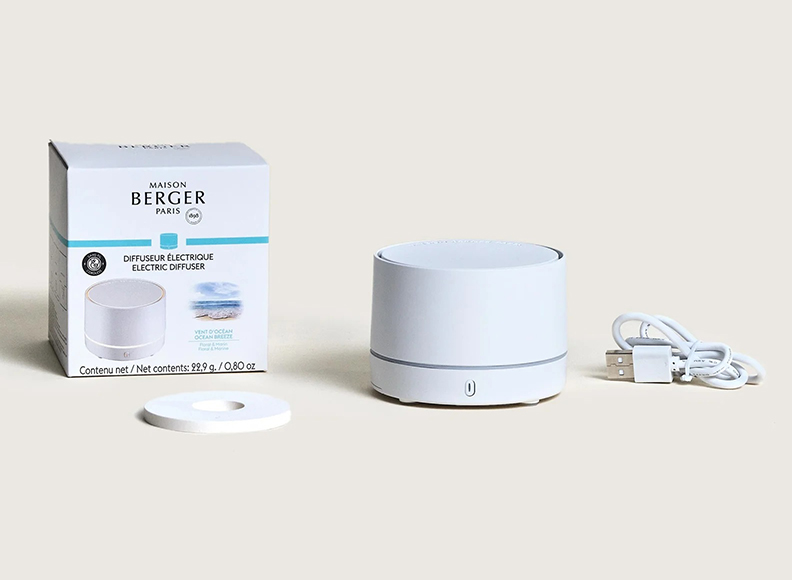 Difusor Nomad blanco de Maison Berger de venta en nuestra tienda de Madrid con Fragancia Viento del Océano de regalo.