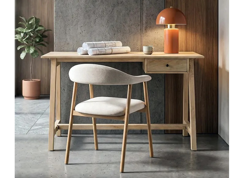 Este escritorio destaca por su estilo nórdico y escandinavo, caracterizado por el uso de maderas claras y una estructura simplificada que aporta luminosidad y orden a cualquier habitación.