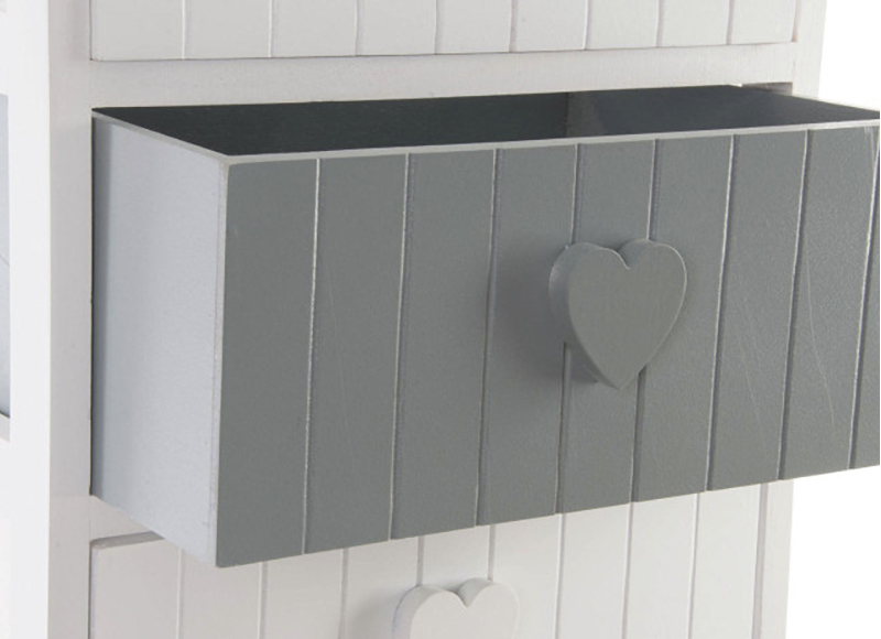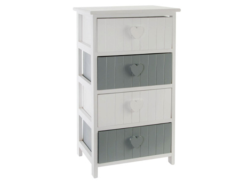 Mueble auxiliar de 4 cajones en blanco y gris con tiradores de corazón: encanto y funcionalidad para tu hogar.