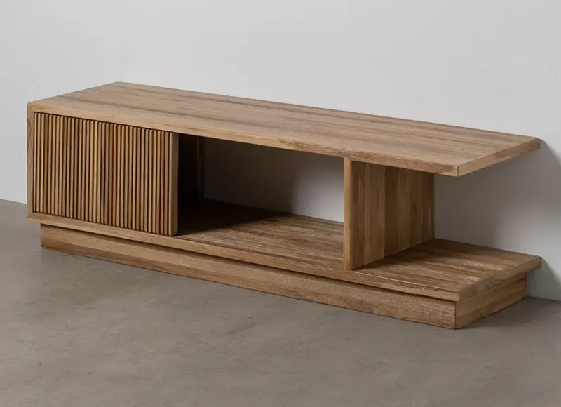 Dispone de un amplio hueco interior, perfecto para organizar dispositivos multimedia, libros o elementos decorativos, manteniendo el espacio ordenado. La teca es una madera resistente y duradera, muy apreciada por su belleza natural y su larga vida útil.